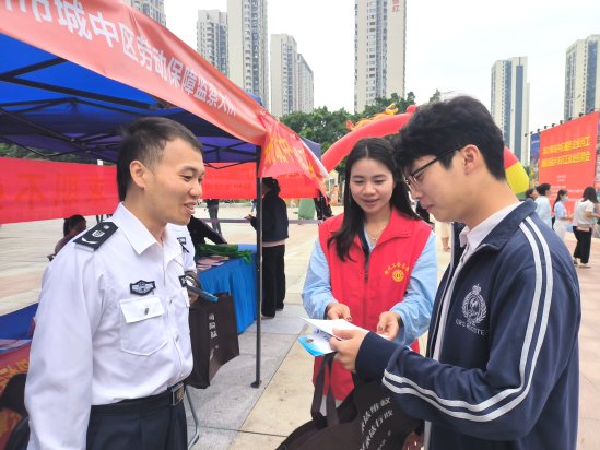 10月13日,柳州市城中区人力资源和社会保障局联合城中区总工会开展2023年城中区返乡农民工就业暨“尊法守法·携手筑梦”服务农民工公益法律服务宣传活动,有效加强农民工对法律法规的学习宣传,切实提高农民工维权意识。