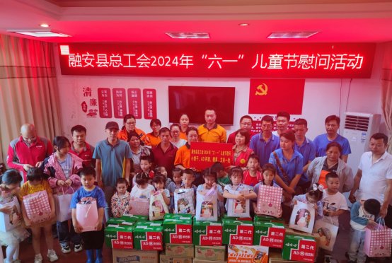 5 月 31 日,融安县总工会组织开展“六一”儿童节送温暖慰问活动,县总工会对124名新就业形态劳动者(快递小哥)儿童家庭进行慰问,为孩子们送上精美的学习文具、美味可口的小零食等物品。
