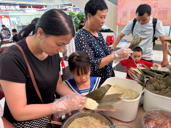 包粽子项目则更受职工欢迎,职工们带着孩子共同制作,向他们介绍广西的“粽子文化”,包出一个个大肉粽、三角粽、凉粽、枕头粽……每个家庭都有自己的特殊配比。动手能力较强的家长,将多出来的粽子与其他家庭共享,现场洋溢着喜悦的氛围。