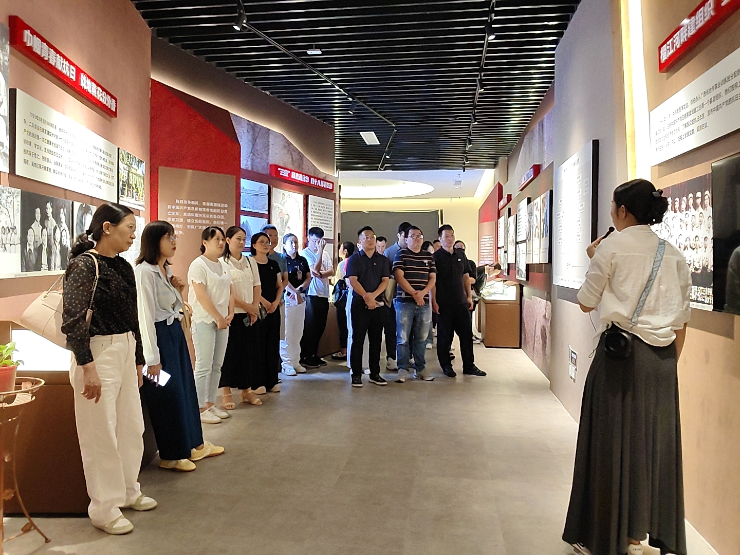 为深入学习贯彻习近平新时代中国特色社会主义思想,传承红色基因、赓续红色血脉,9月18日,城中区总工会党支部联合区人民政府办公室党支部、区自然资源局党支部、区退役军人事务局党支部、柳州市丰鑫投资有限公司党支部等单位,组织党员及入党积极分子近50人,赴鹿寨红色文化陈列馆开展参观学习活动。