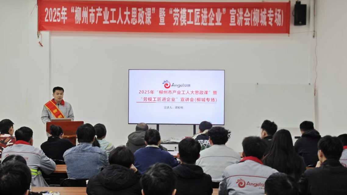 11 月 27 日,柳城县总工会走进安琪酵母(柳州)有限公司,开展 2025 年 “柳州市产业工人大思政课” 暨 “劳模工匠进企业” 宣讲会?;疃乇鹧肓莨そ程吩C鞣窒沓沙だ逃虢承母形颍?0 名企业职工现场聆听,沉浸式感受工匠精神的力量。
