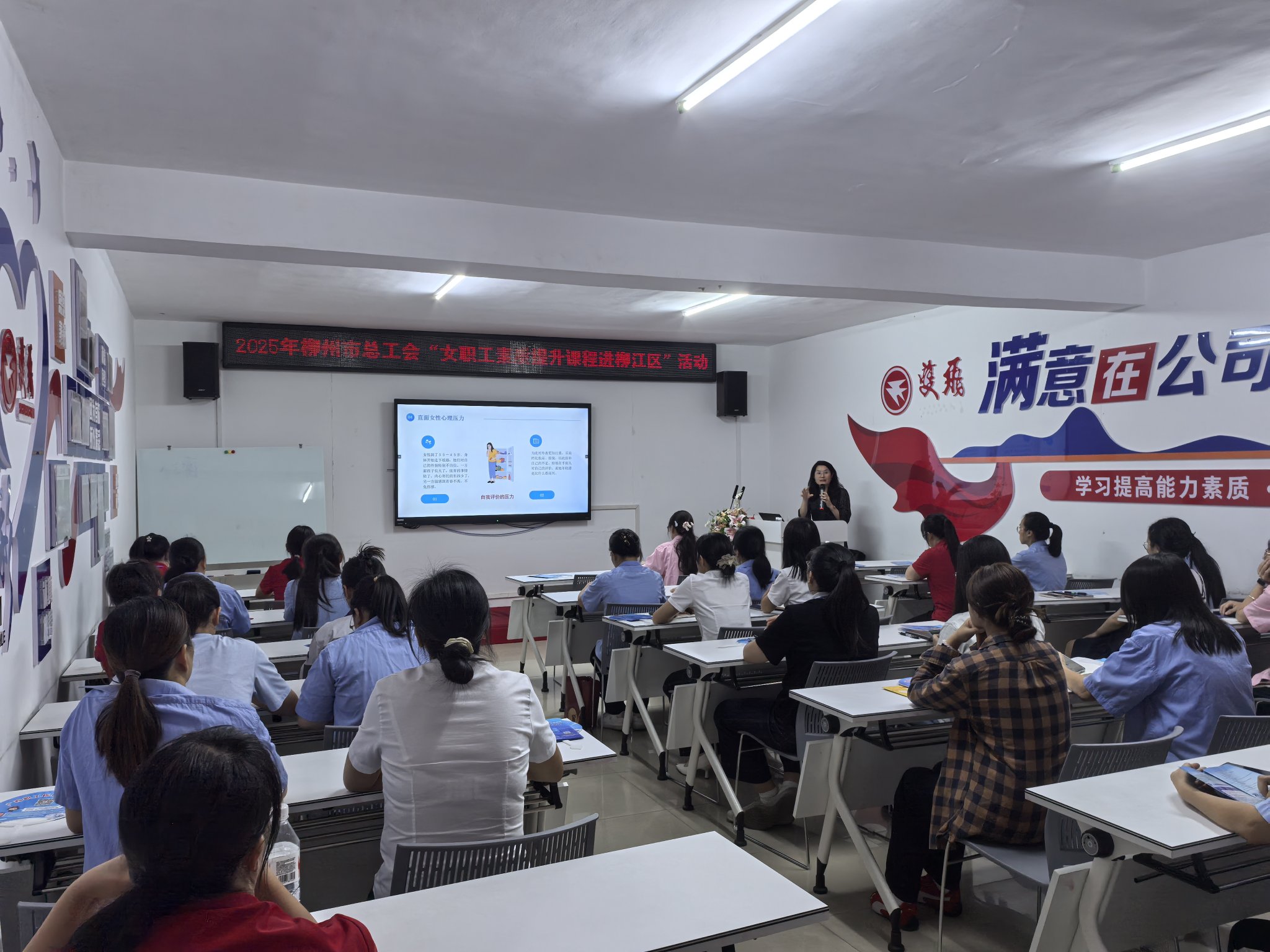 为丰富女职工精神文化生活,增强女职工获得感、幸福感、安全感,9月24日,柳州市总工会“女职工素质提升课程进柳江区”活动在柳州市双飞汽车电器配件制造有限公司举行,吸引了40余名女职工到场聆听。