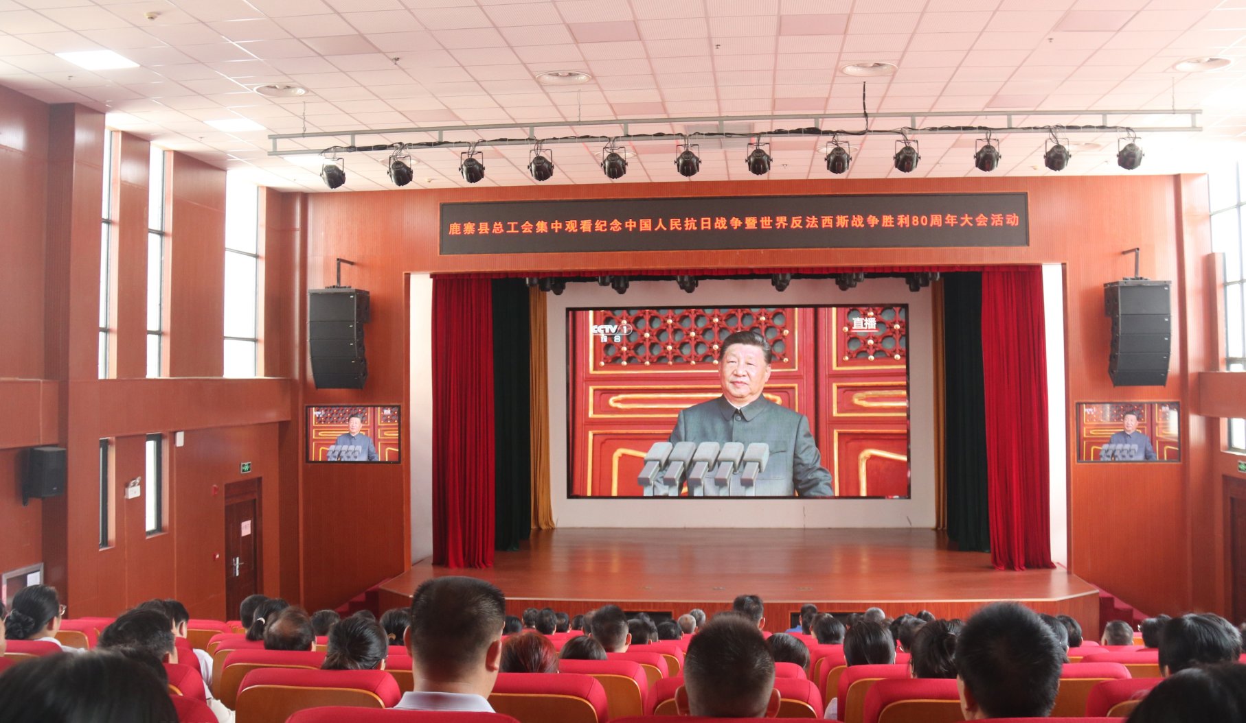 鹿寨县总工会集中观看纪念中国人民抗日战争暨世界反法西斯战争胜利80周年大会活动