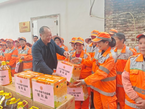 春节期间,当大多数人团聚欢庆之时,环卫工人、公交车司机依然坚守在岗位一线,用辛勤付出保障县城的整洁与出行的畅通。为向这些“最美坚守者”表达敬意,鹿寨县总工会为2026年春节坚守岗位的285名环卫工人、23名公交车司机送去油、蜜橙等实用慰问物资,慰问现场,慰问组与一线职工亲切交流,对他们长期以来为鹿寨县发展和民生保障所作出的贡献表示感谢,同时叮嘱大家在坚守岗位的同时,要注意防寒保暖和自身安全,让一线职工在寒冬中感受到浓浓的关怀与温暖,进一步增强了他们的职业荣誉感和归属感。