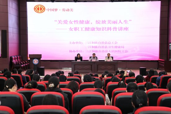 3 月 12 日,三江侗族自治县总工会联合县卫健局,在县人民医院三楼报告厅举办 2026 年女职工健康知识科普公益讲座,全县各机关、企事业工会女职工代表参加活动。