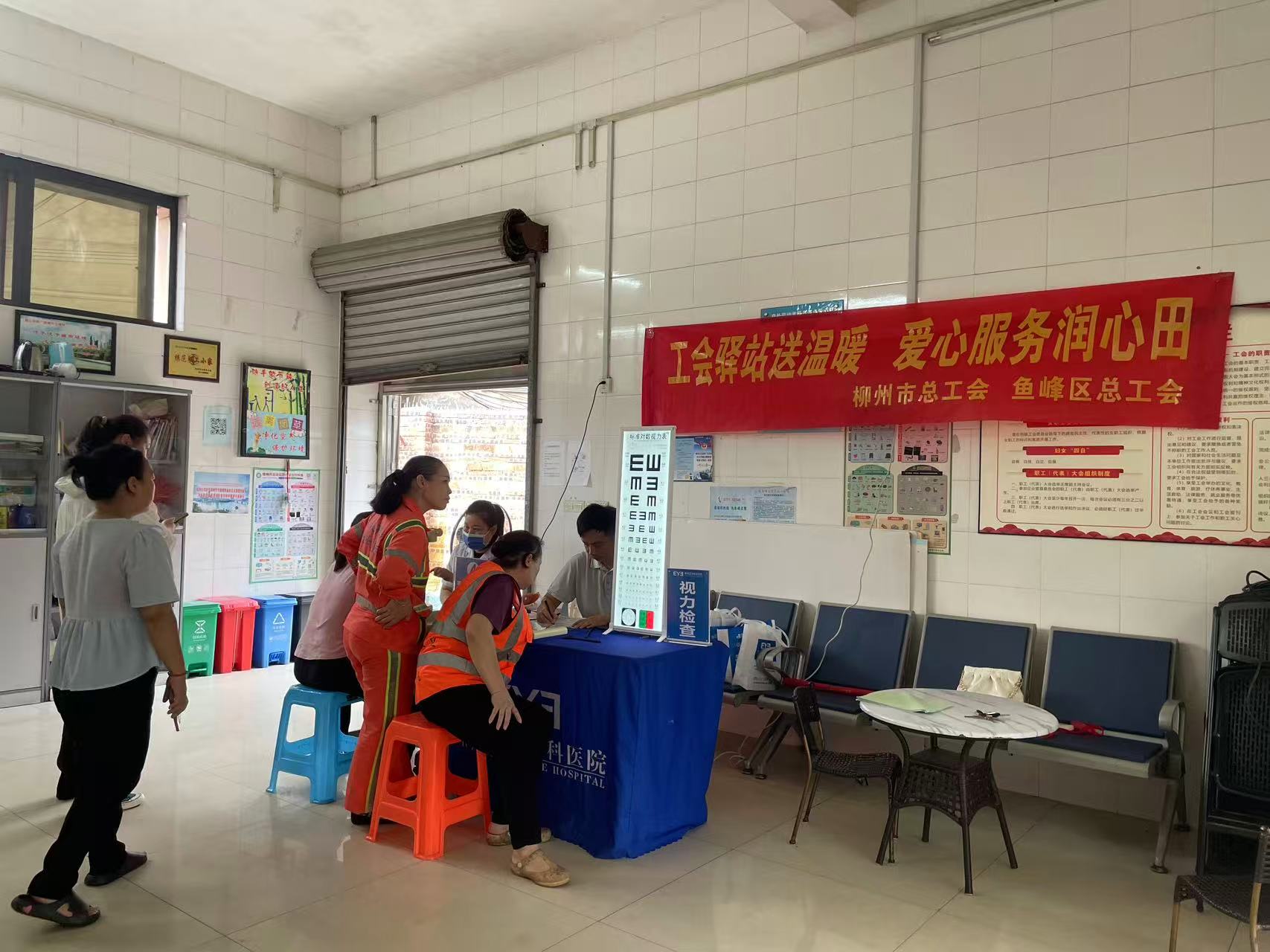 9月12日上午,在柳州市银桐路环卫之家工会驿站内,由柳州市总工会主办,鱼峰区总工会协办的“爱心剪发、视力检测”活动火热进行中。