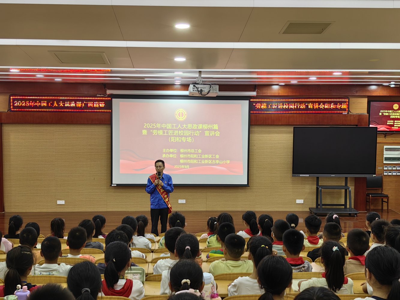 9月30日,柳州市阳和工业新区工会在阳和古亭山小学开展“劳模工匠进校园”宣讲活动,该校百余名师生参加了活动。
