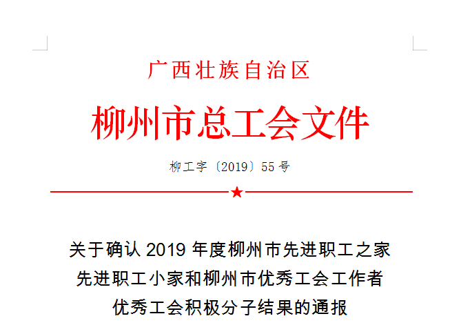 柳州市总工会关于确认2019年度柳州市先进职工之家先进职工小家和柳州市优秀工会工作者优秀工会积极分子结果的通报