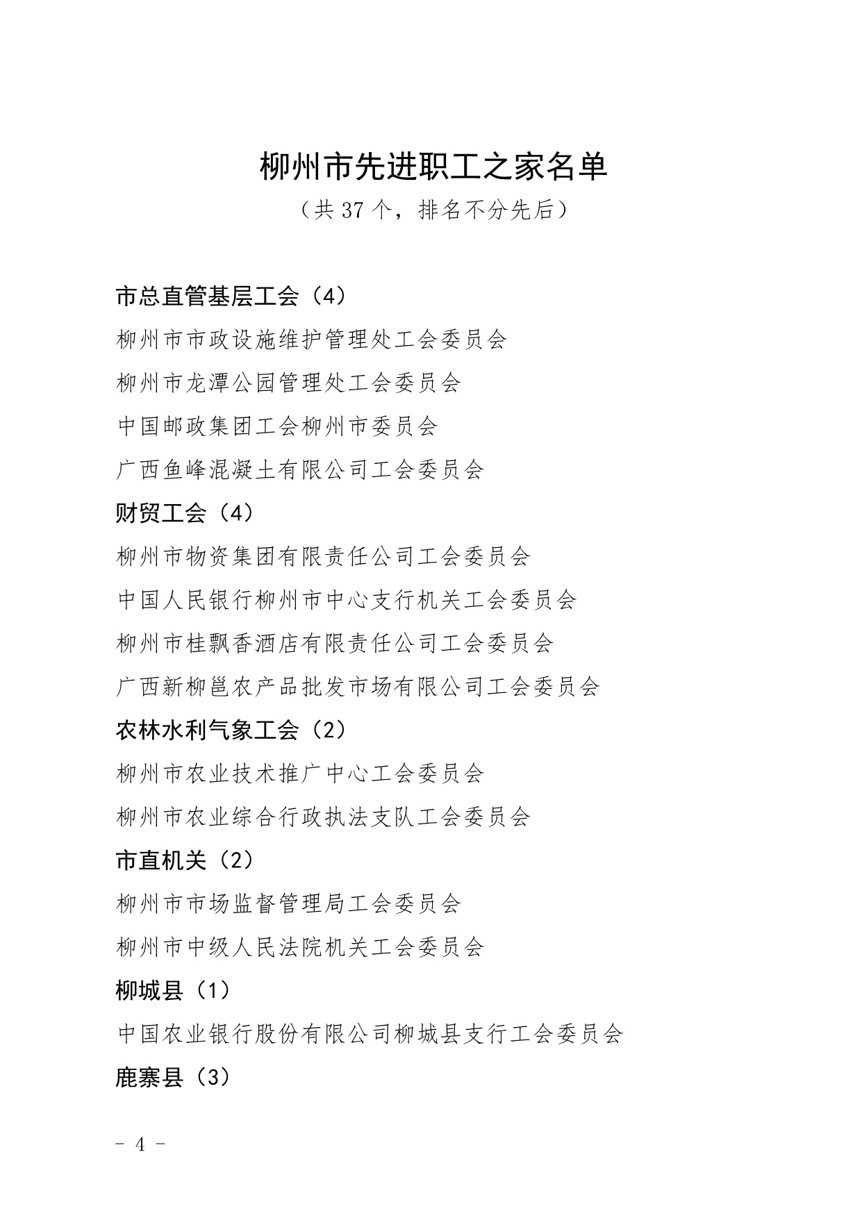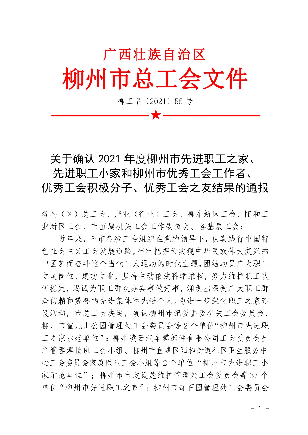 关于确认2021年度柳州市先进职工之家、先进职工小家和柳州市优秀工会工作者、优秀工会积极分子、优秀工会之友结果的通报