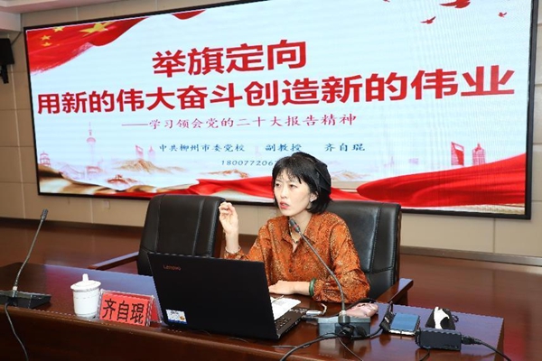 中共柳州市委党校副教授、党史党建教研室副主任齐自琨授课。(曾婷婷摄)